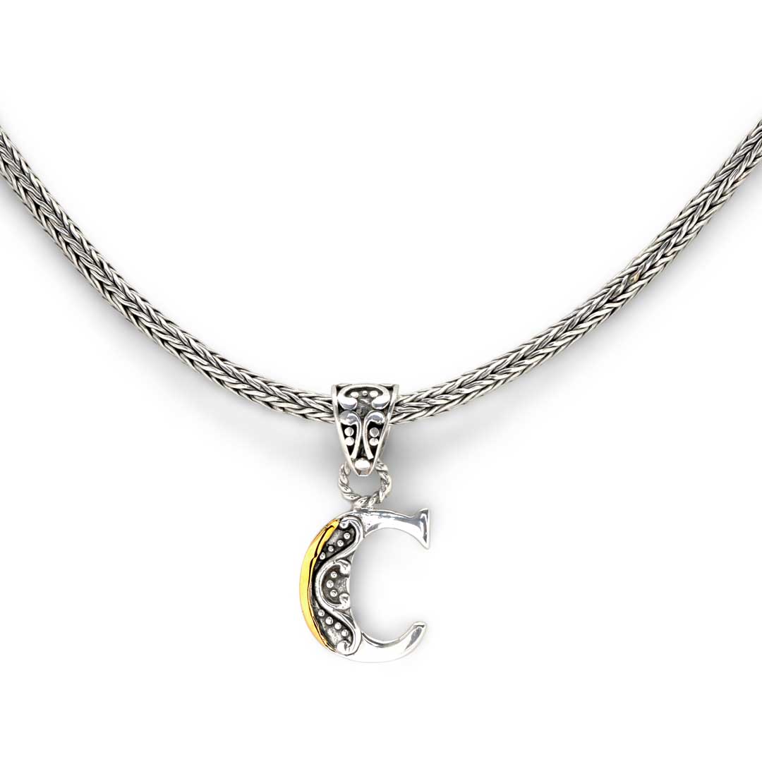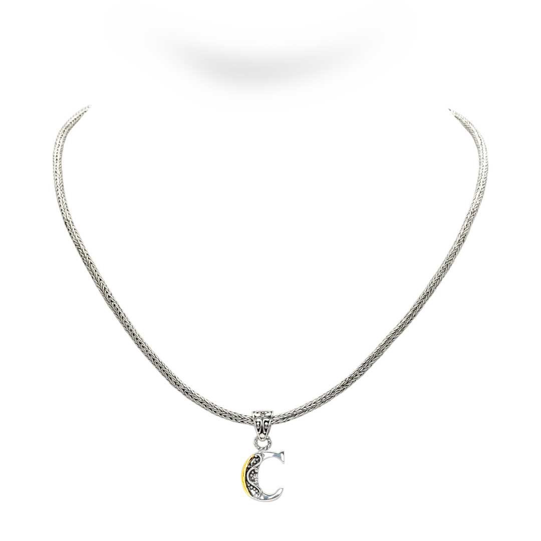 Gold & Silver necklace, alphabet collection, letter C, tulang naga chain 2.5mm with bali lobster clasp