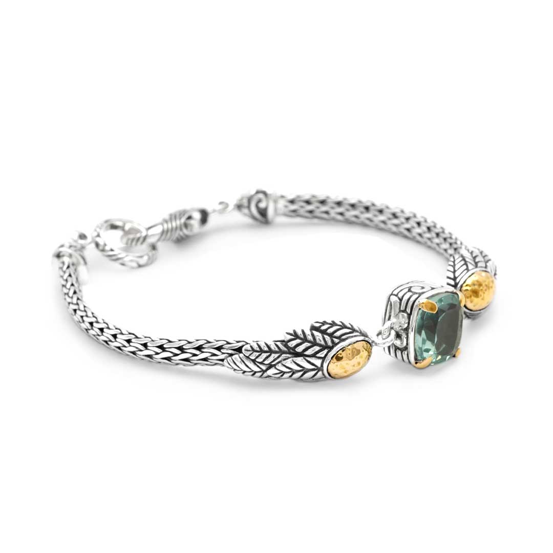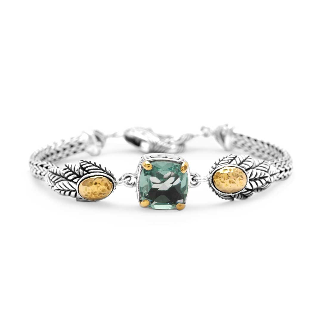 Gold & Silver Bracelet Green Amethyst, Cushion 10mm
