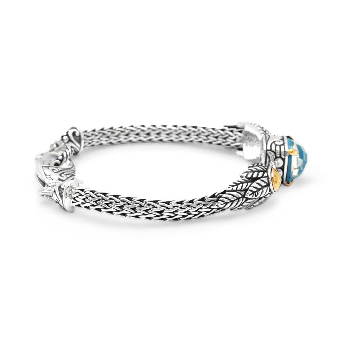 Gold & Silver bracelet, Turquoise Crystal cushion 10 mm, 18K gold accents. Chain 3x5 oval