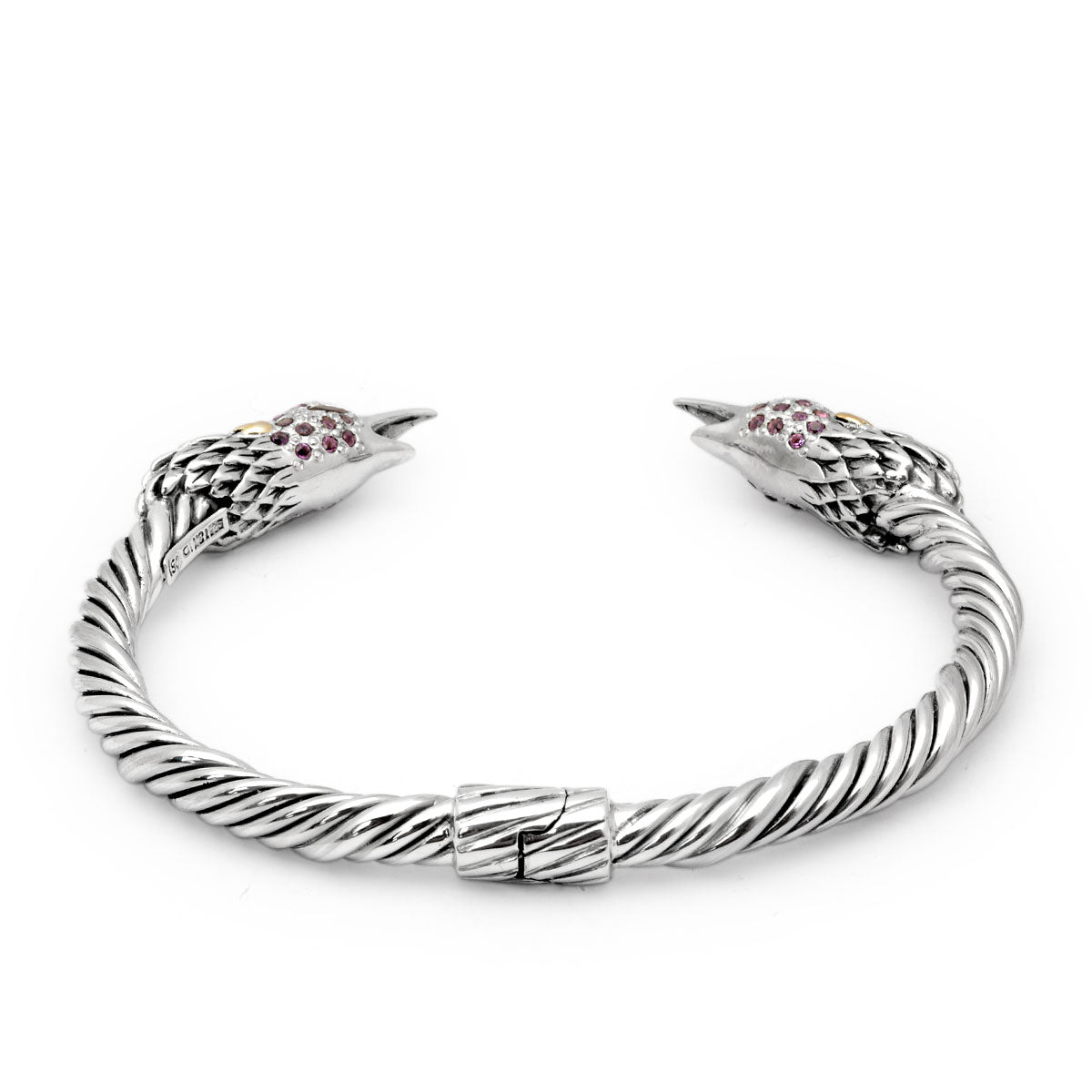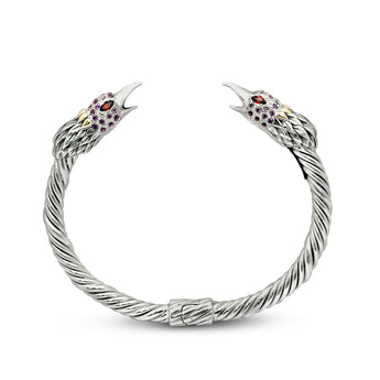 Gold & Silver Cable Bangle Bird Head, Garnet & Amethyst Pave