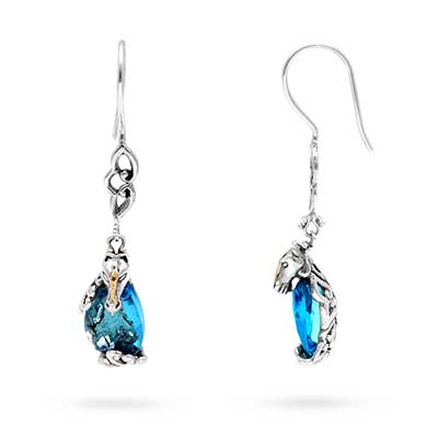 Gold & Silver horse pendant, Blue quartz 10x15 pearshape checkerboard