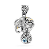 Gold & Silver Pendant Elephant, Blue Topaz Round