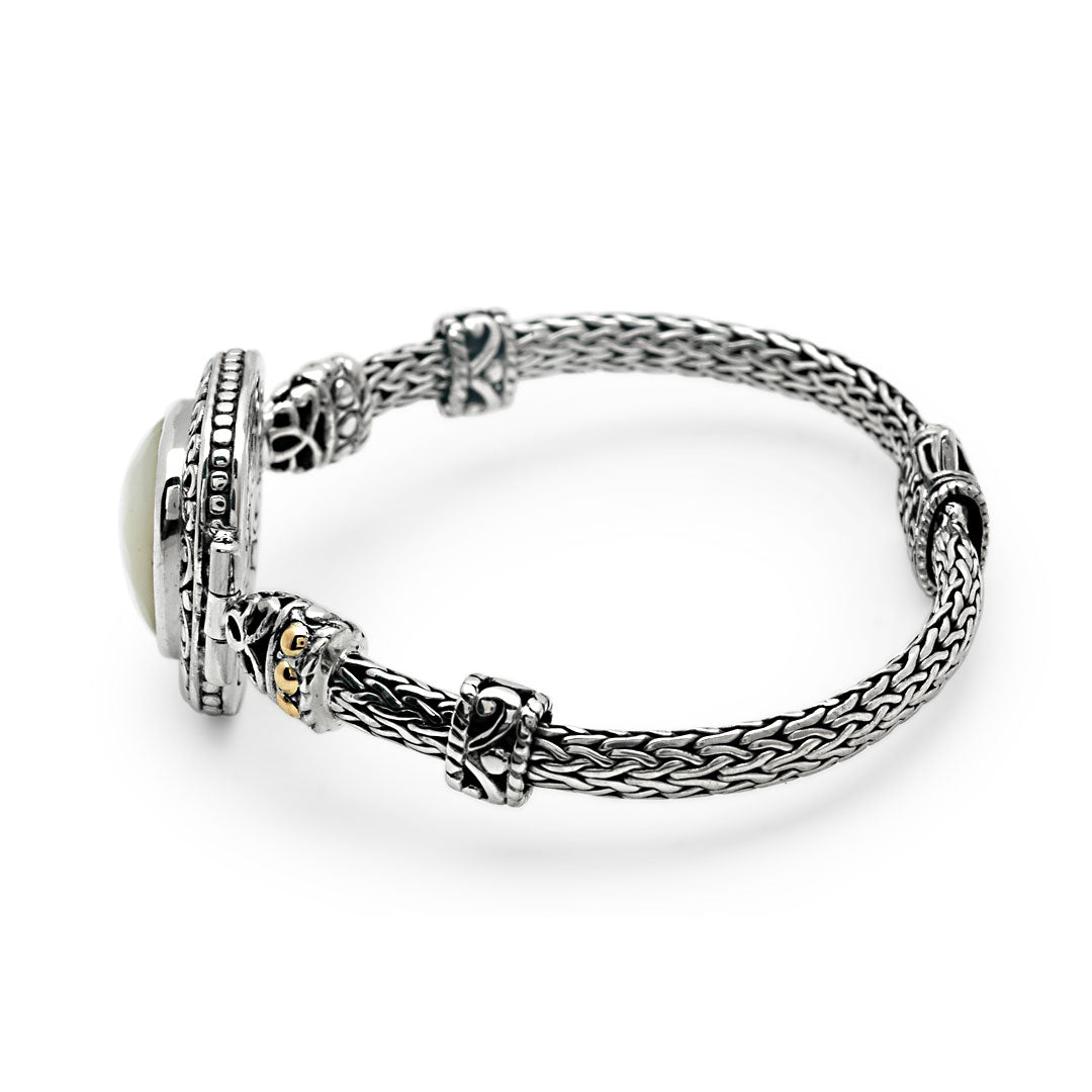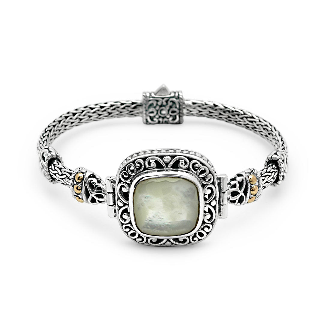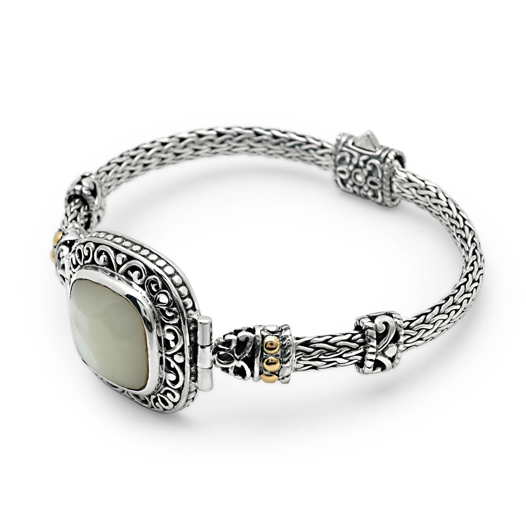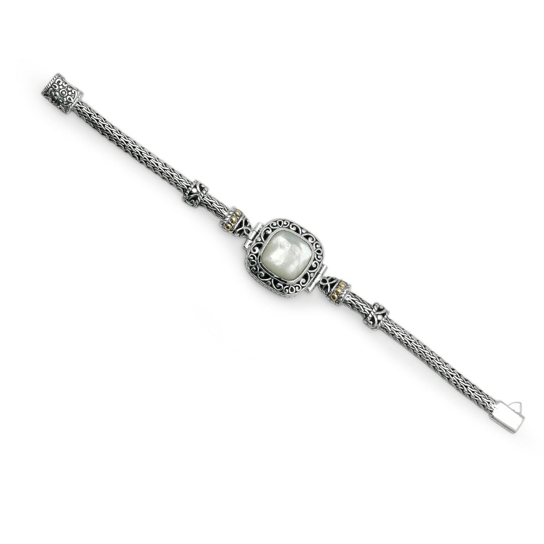 Gold & Silver Bracelet MOP Facet, Cushion 15mm, Tulang Naga Chain 3x5
