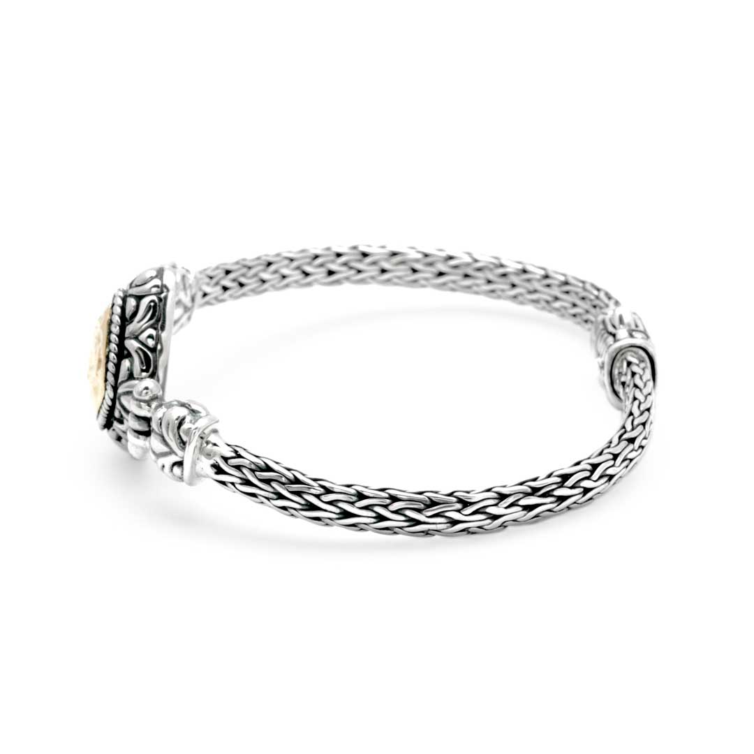 Gold & Silver bracelet, Tulang naga chain 3x5 oval, 18K gold hammer