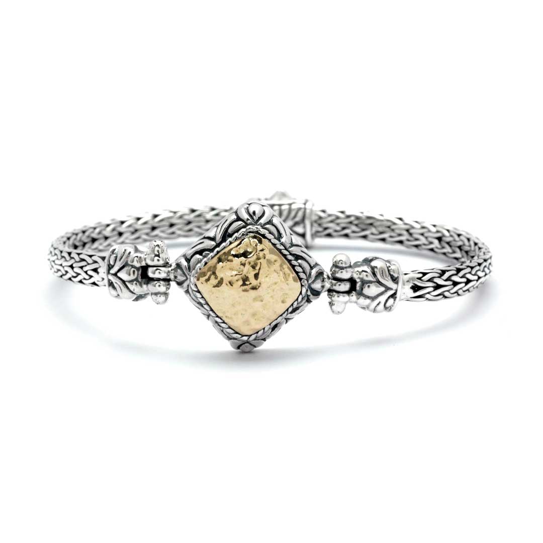 Gold & Silver Bracelet Tulang Naga 3x5, 18K Gold Hammer