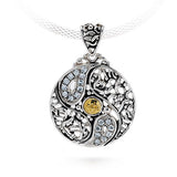 Gold & silver pendant, filigree tree of life pattern and white CZ pave