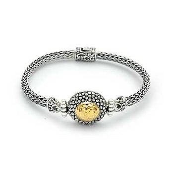 Silver & Gold Bracelet Bali Motif, Cushion Jawan, Hammered Gold Version