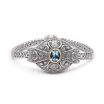 Gold & Silver bracelet with blue topaz,Balinese jawan setting motif