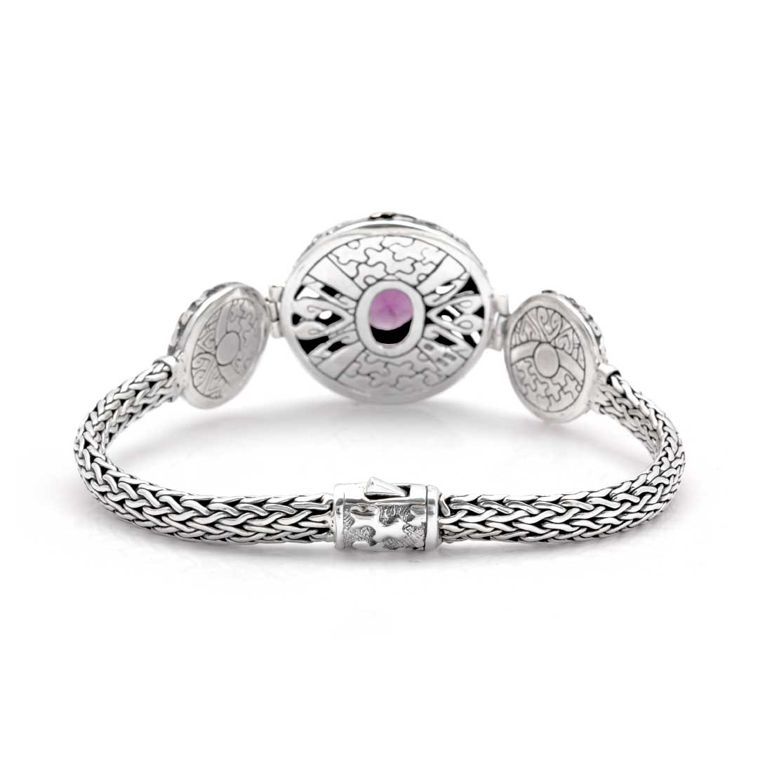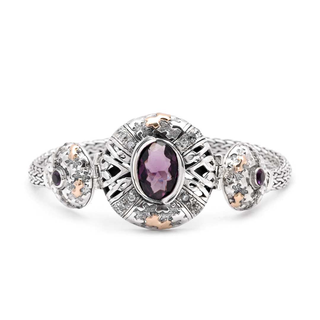 Gold & Silver bracelet with hydro quartz Amethyst, pave white zircon, Puzzle motif