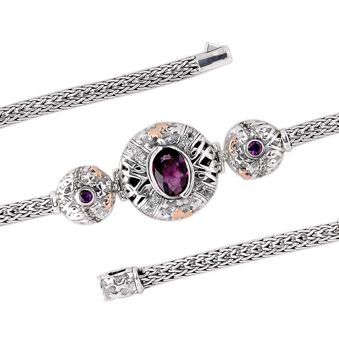 Gold & Silver Bracelet Puzzle, Hydro Quartz Amethyst, White Zircon Pave