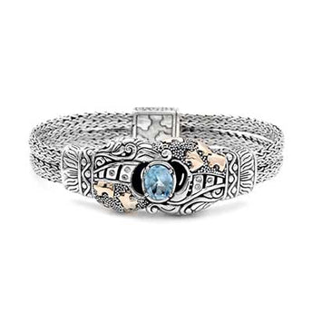 Gold & Silver bracelet with puzzle motif. Stone: Blue Topaz and White CZ