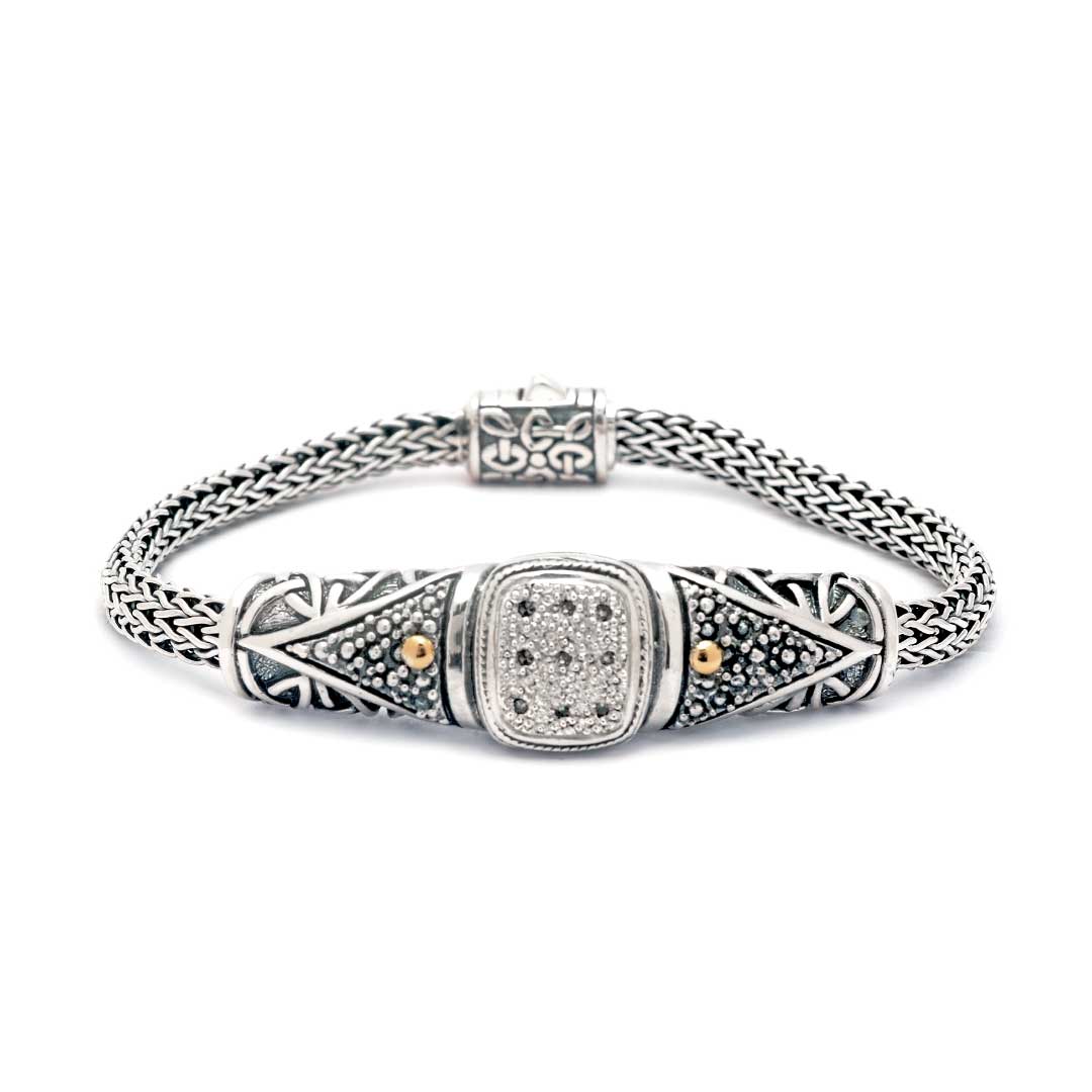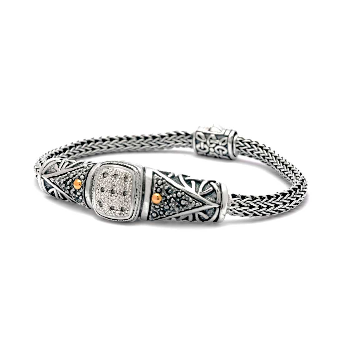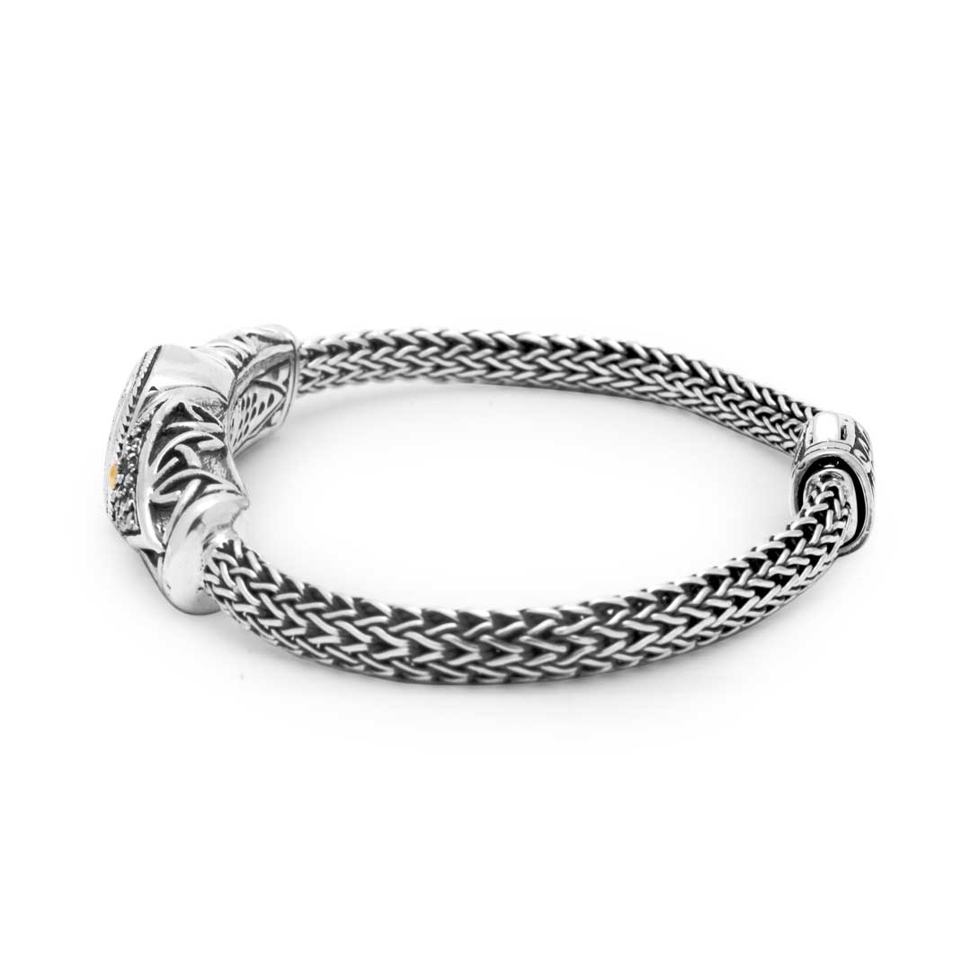Gold & Silver bracelet, tulang naga chain oval 3x5 with spring lock, celtic motif and Cz pave