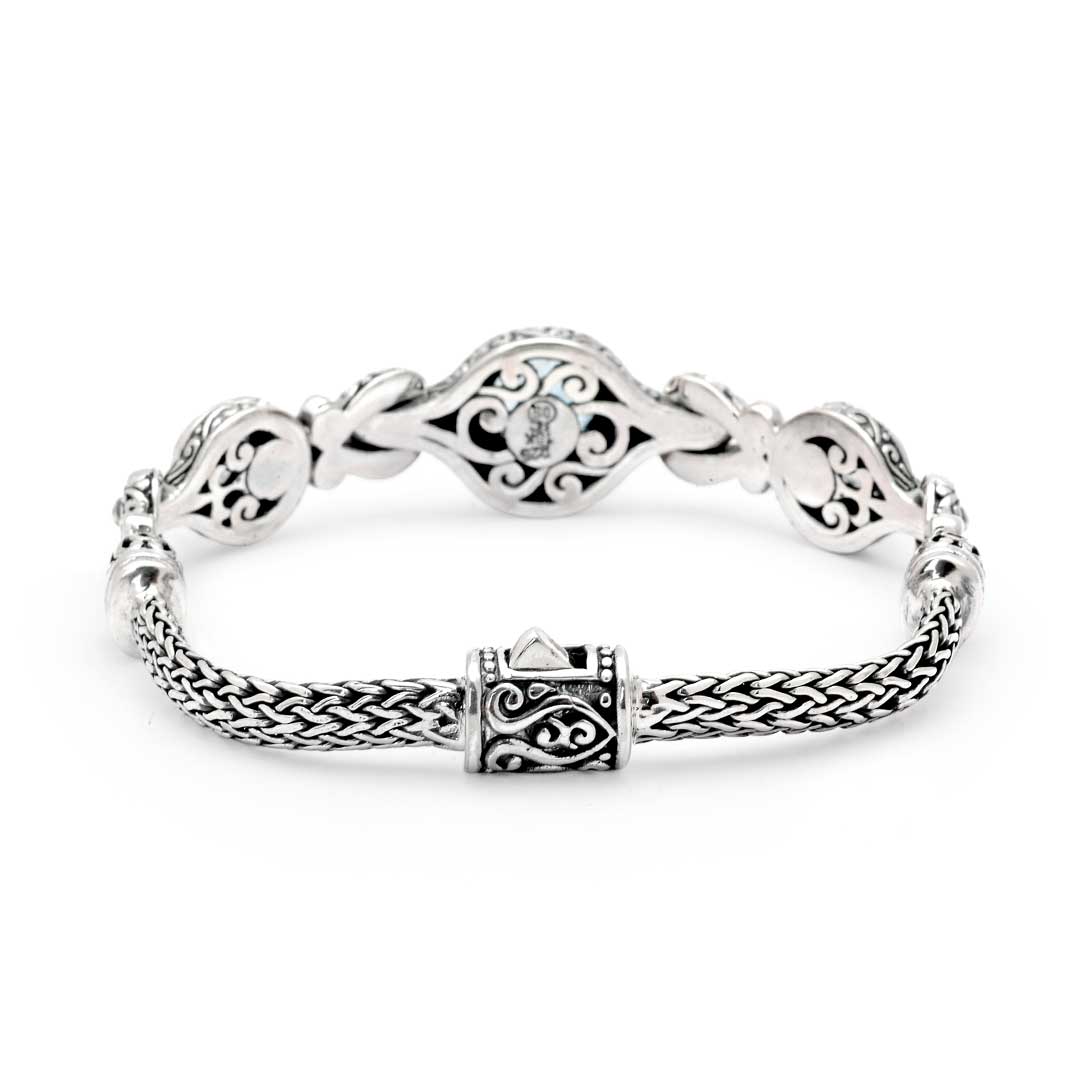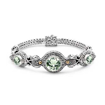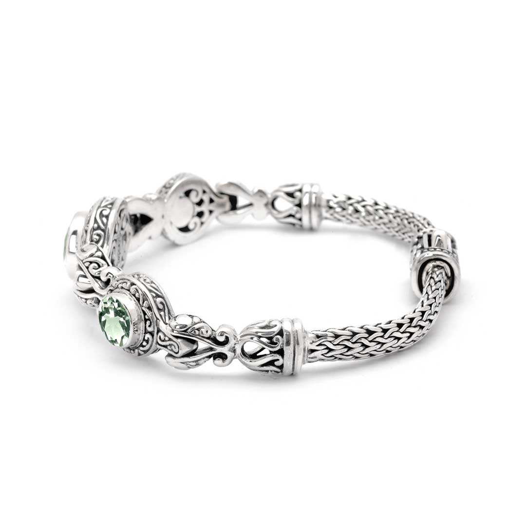 Silver & Gold Bracelet Green Amethyst, Bali Motif