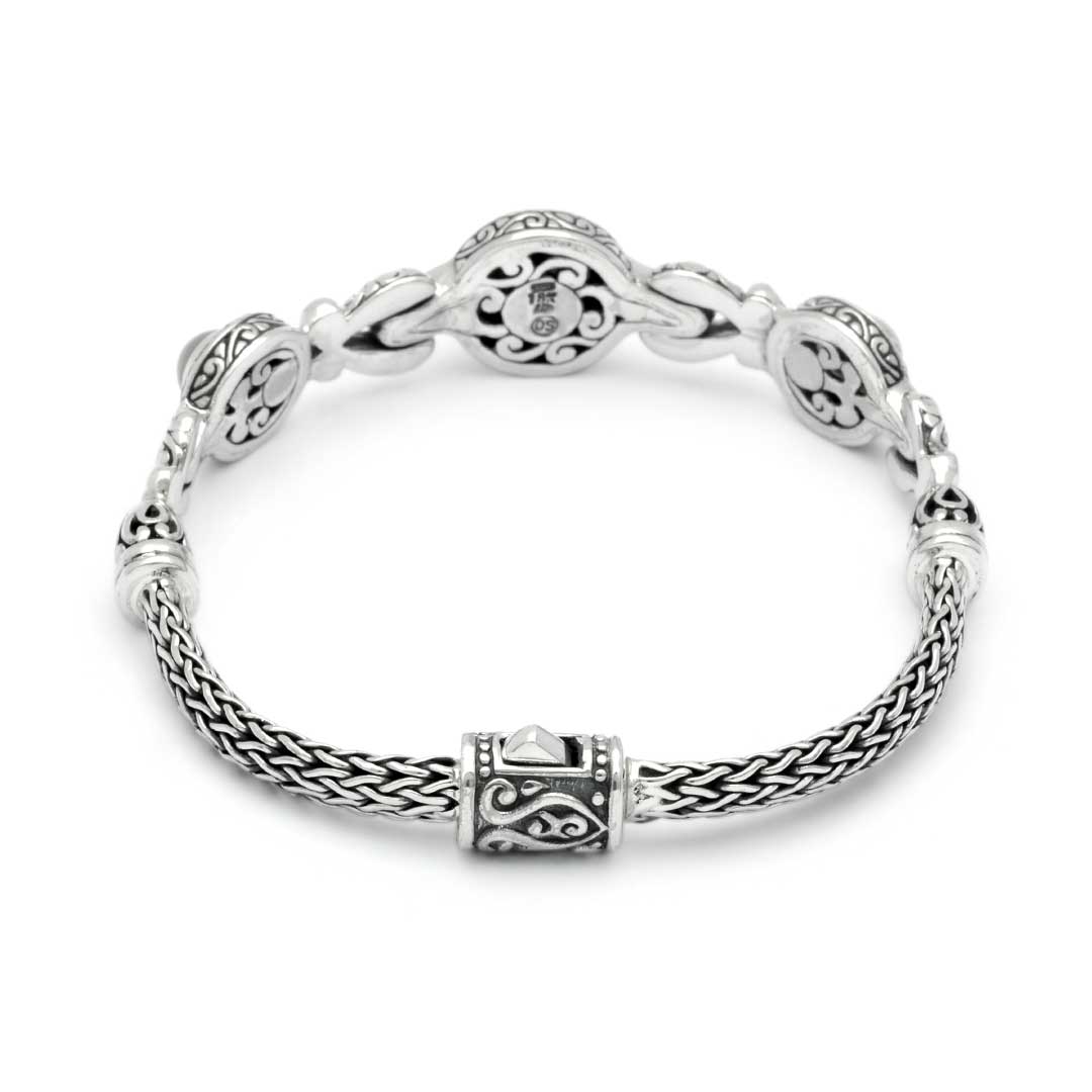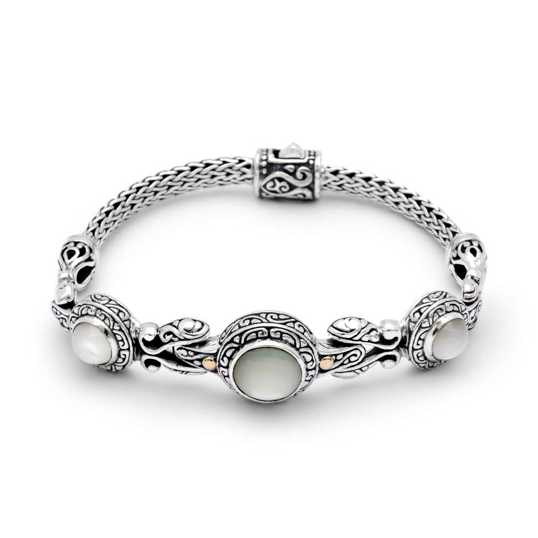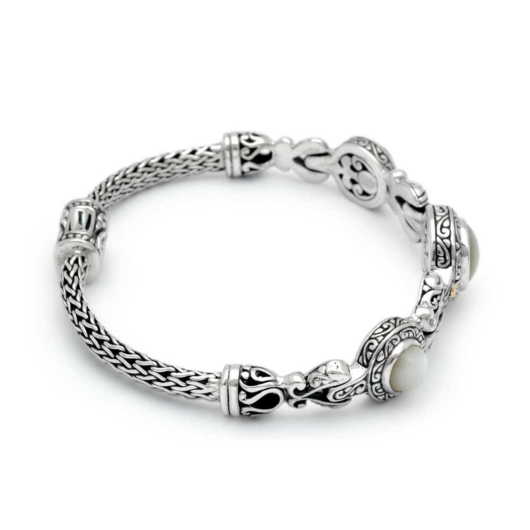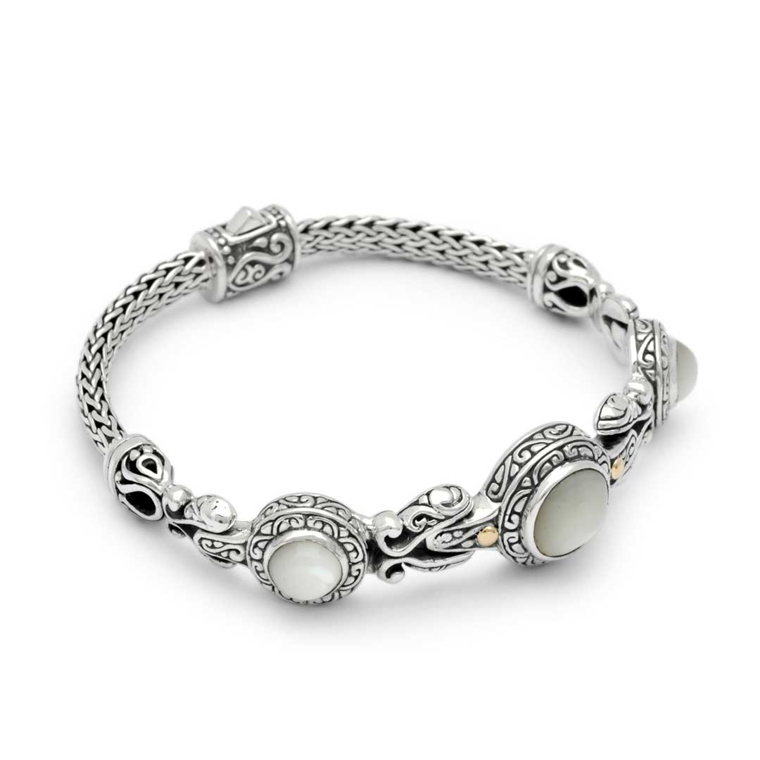 Silver & Gold Bracelet Pearl, Bali Motif