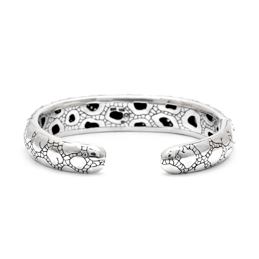 Silver Gold Bracelet White Topaz Crocodile Skin Kick Cuff 3 Rows