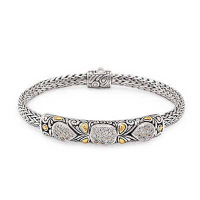 Silver and Gold Bracelet with White Topaz pave setting, tulang naga chain 5x7