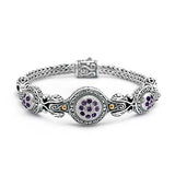 Silver & Gold Bracelet with Bali Motif, Amethyst Pave Stones