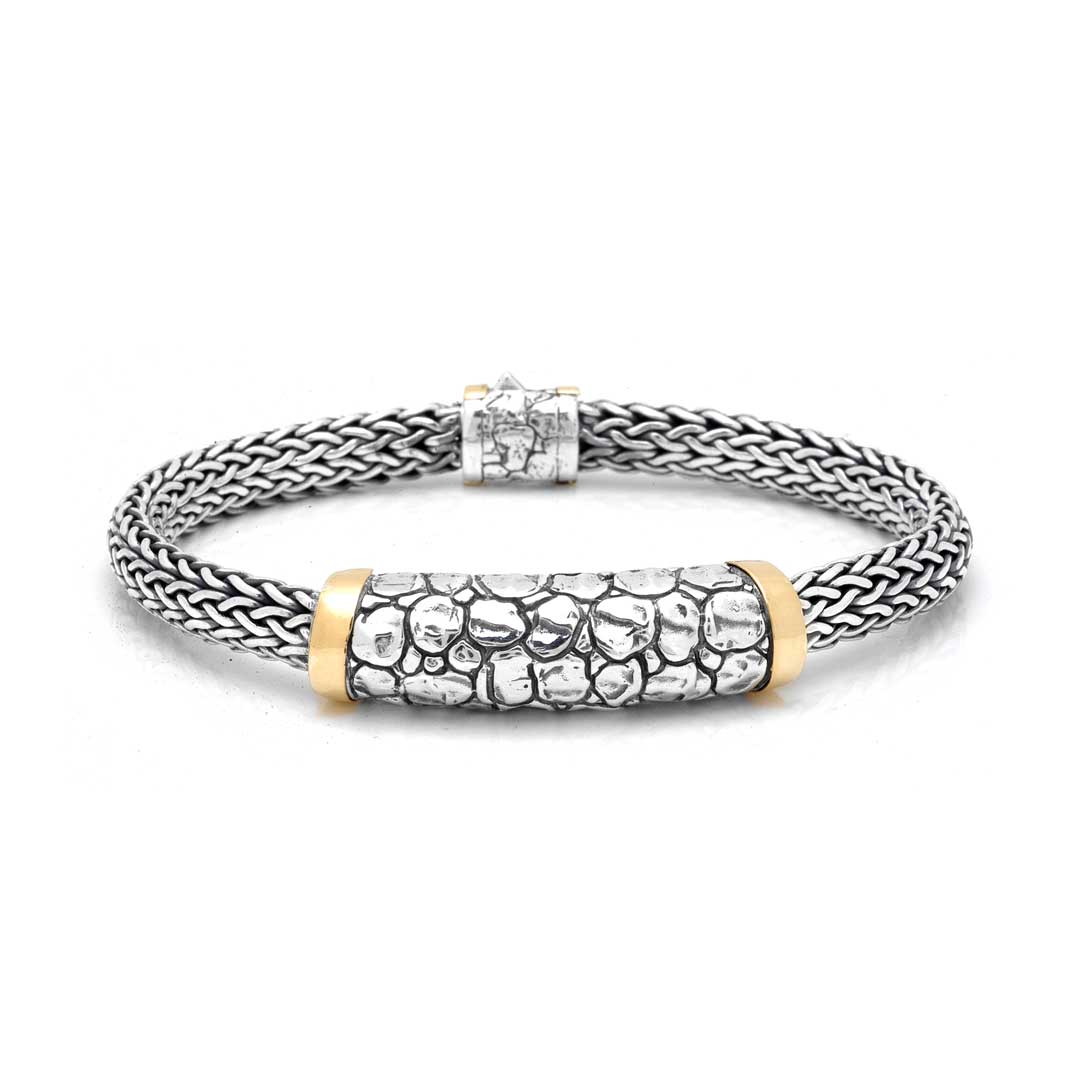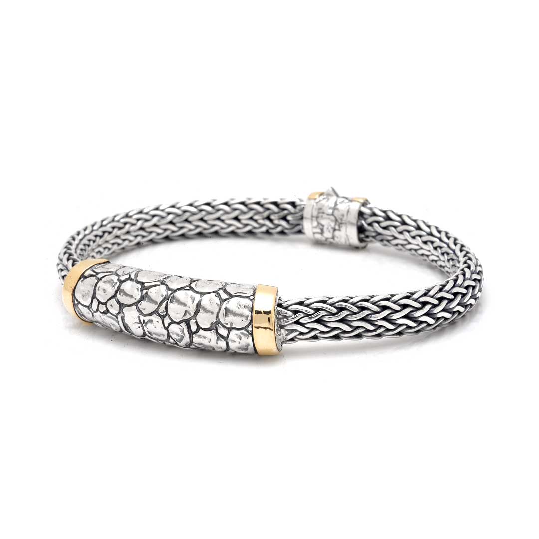 Gold & Silver Bracelet Crocodile, Gold Bezel, Tulang Naga 5x7