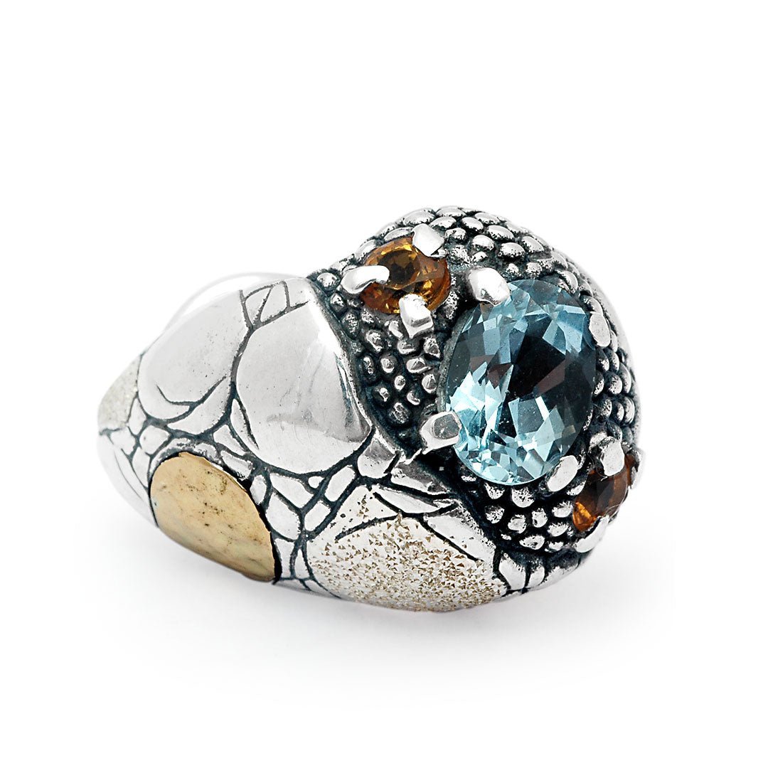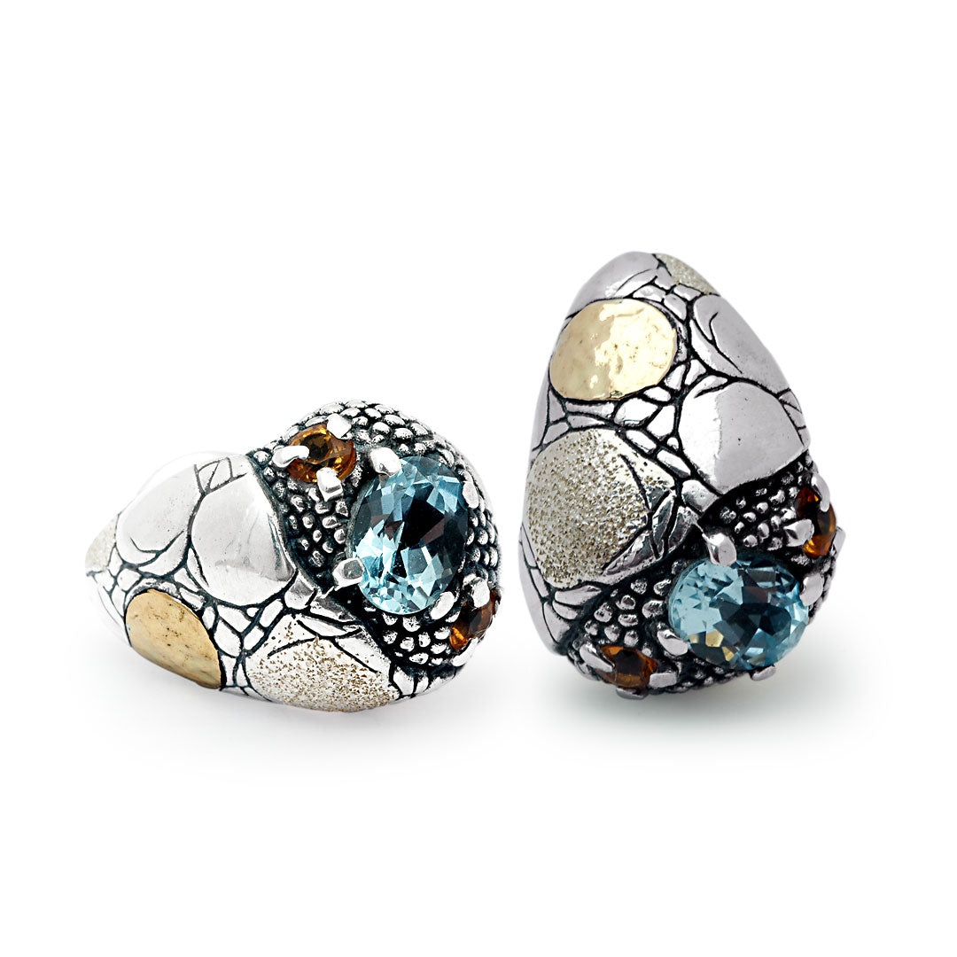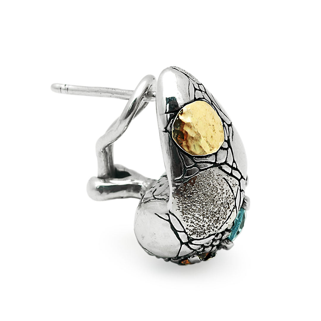 Gold & Silver Earring Crocodile, Blue Topaz & Citrine