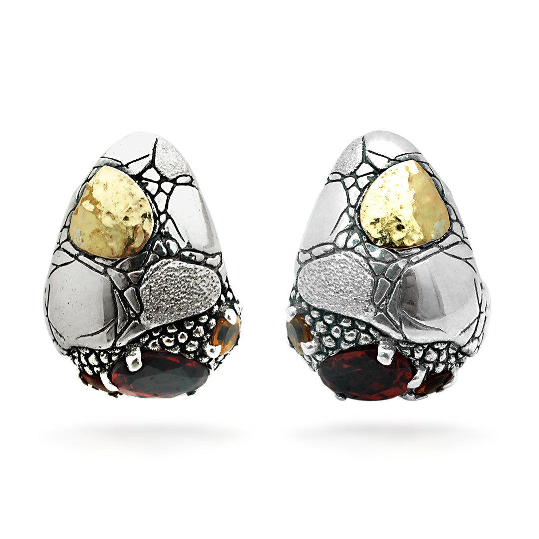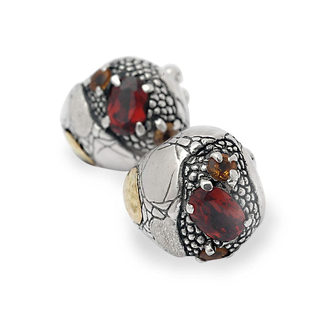 Gold & Silver Earring Crocodile, Citrine & Garnet