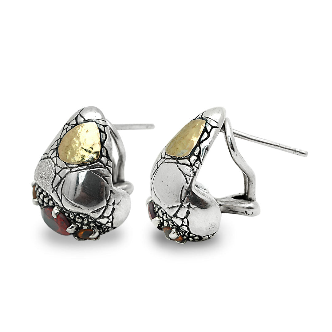Gold & Silver Earring crocodile motif with Citrine and Garnet. Omega Clasp