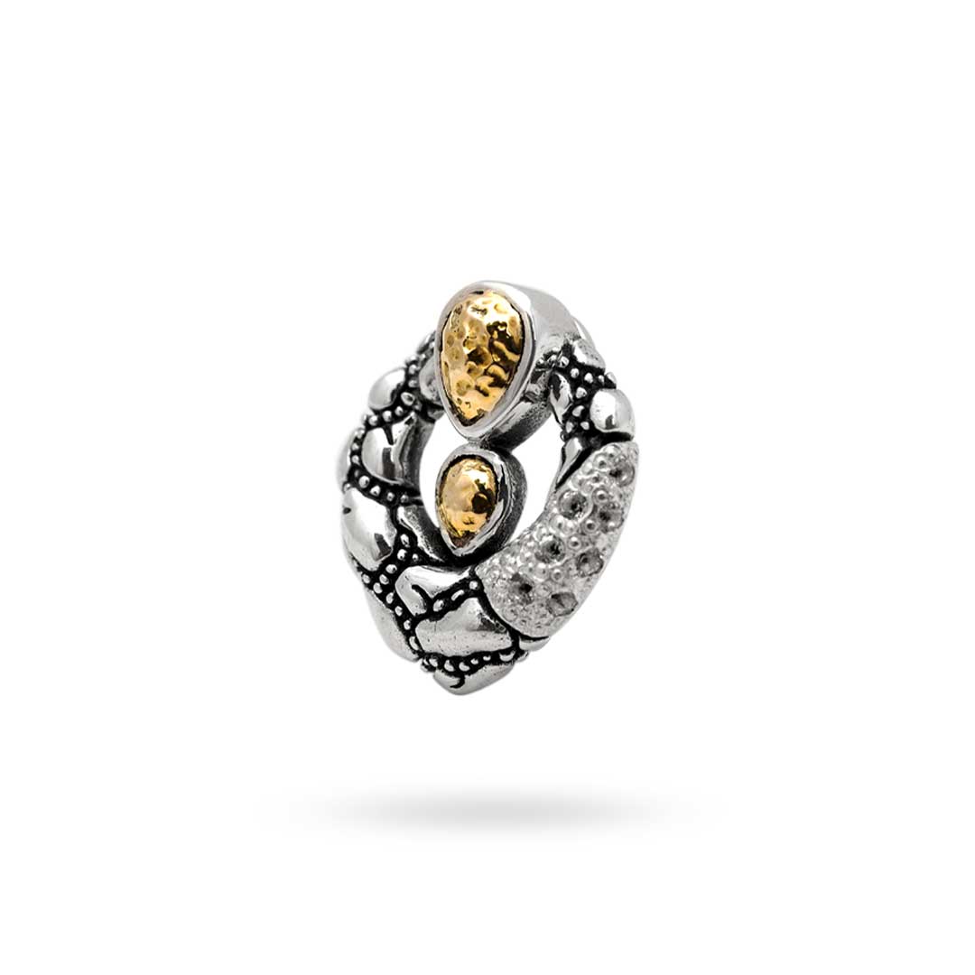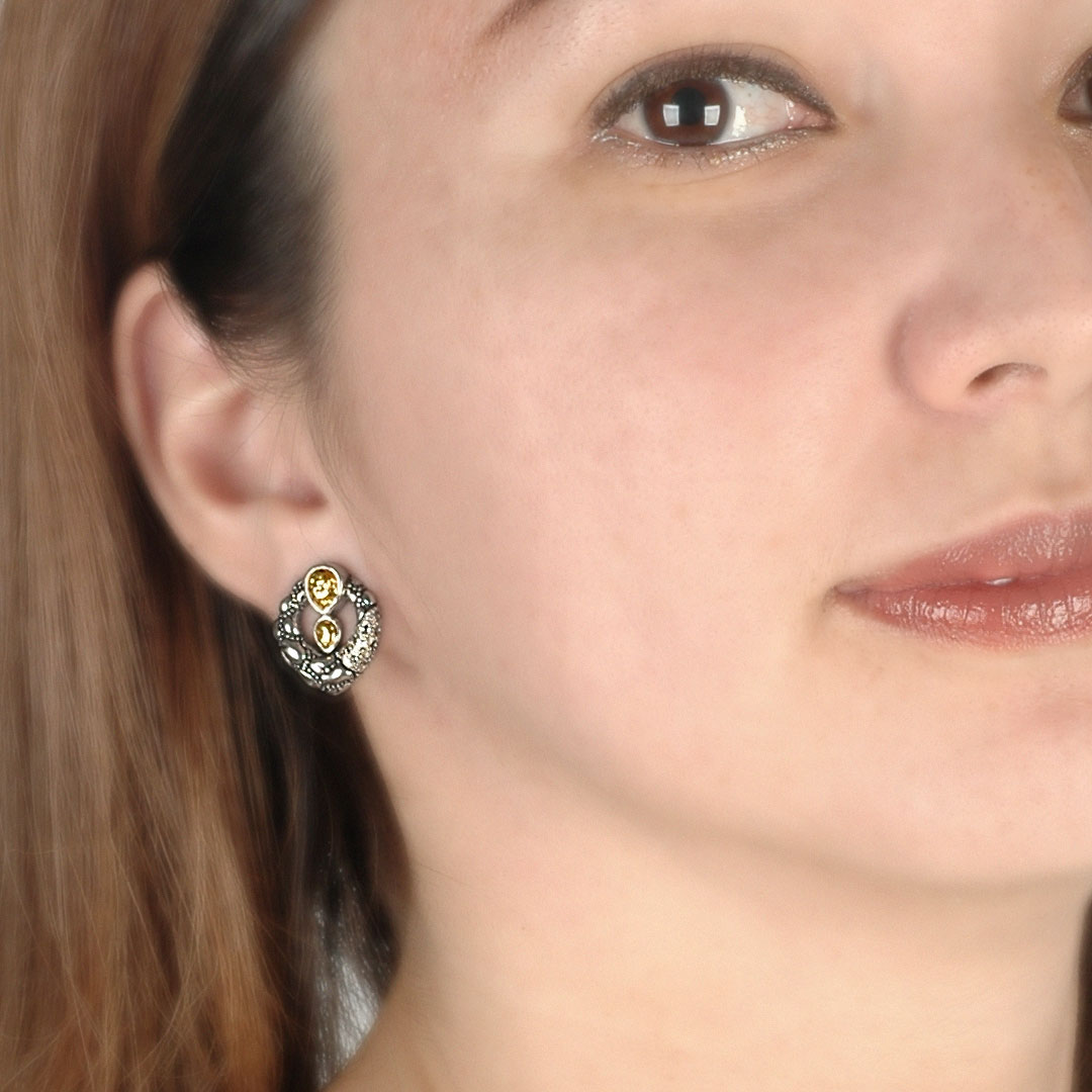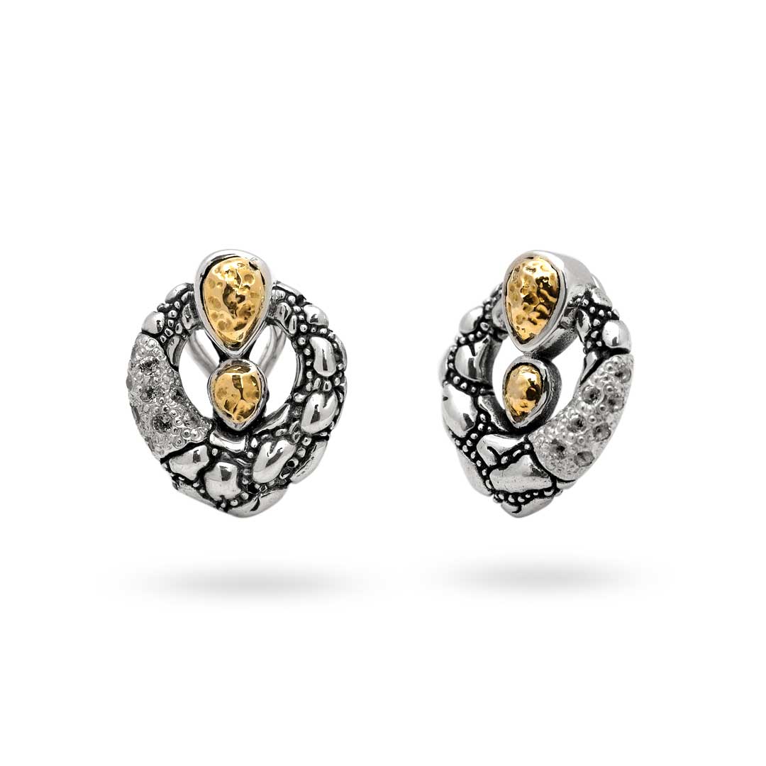 Gold & Silver earring, crocodile skin collection, white topaz pave setting, omega clasp back