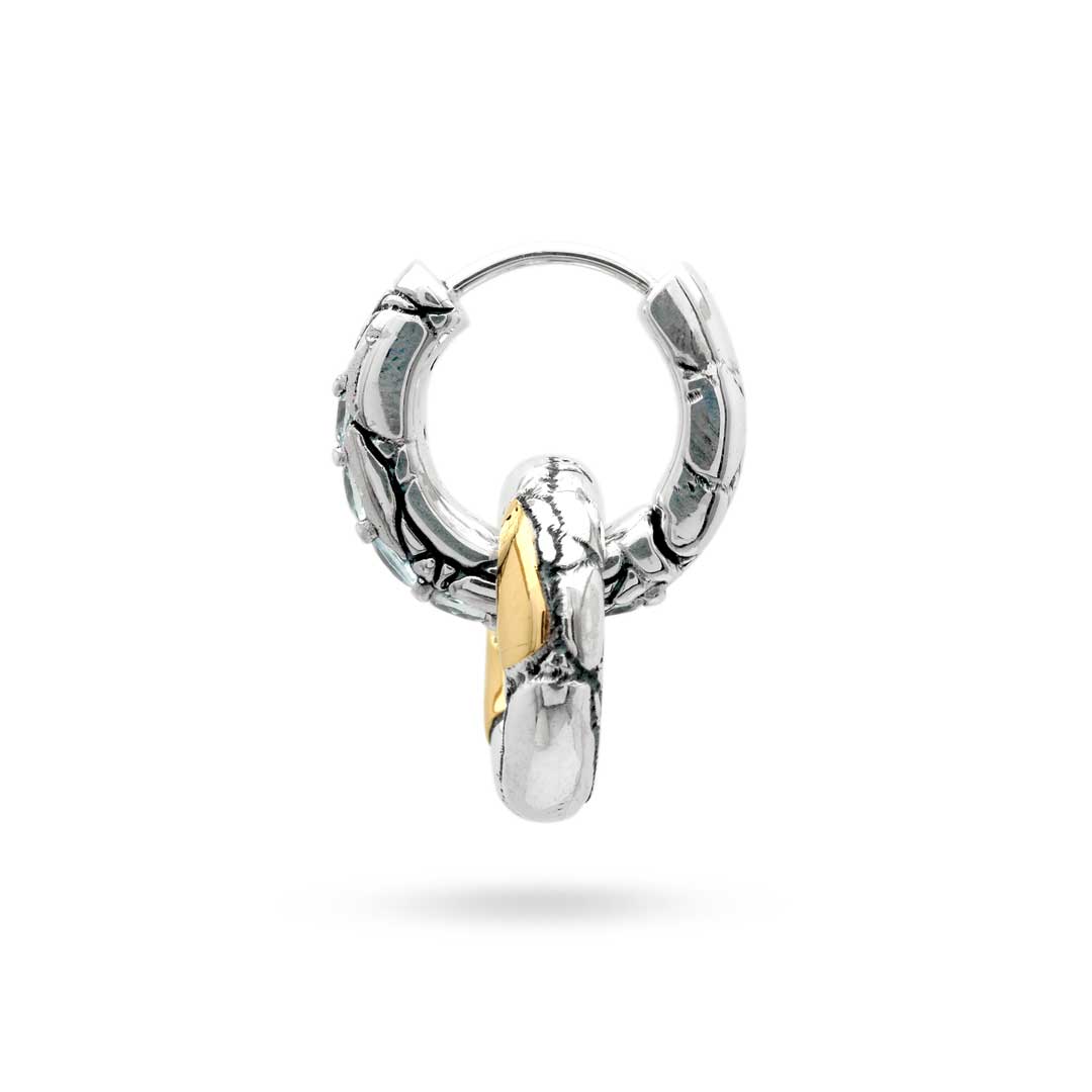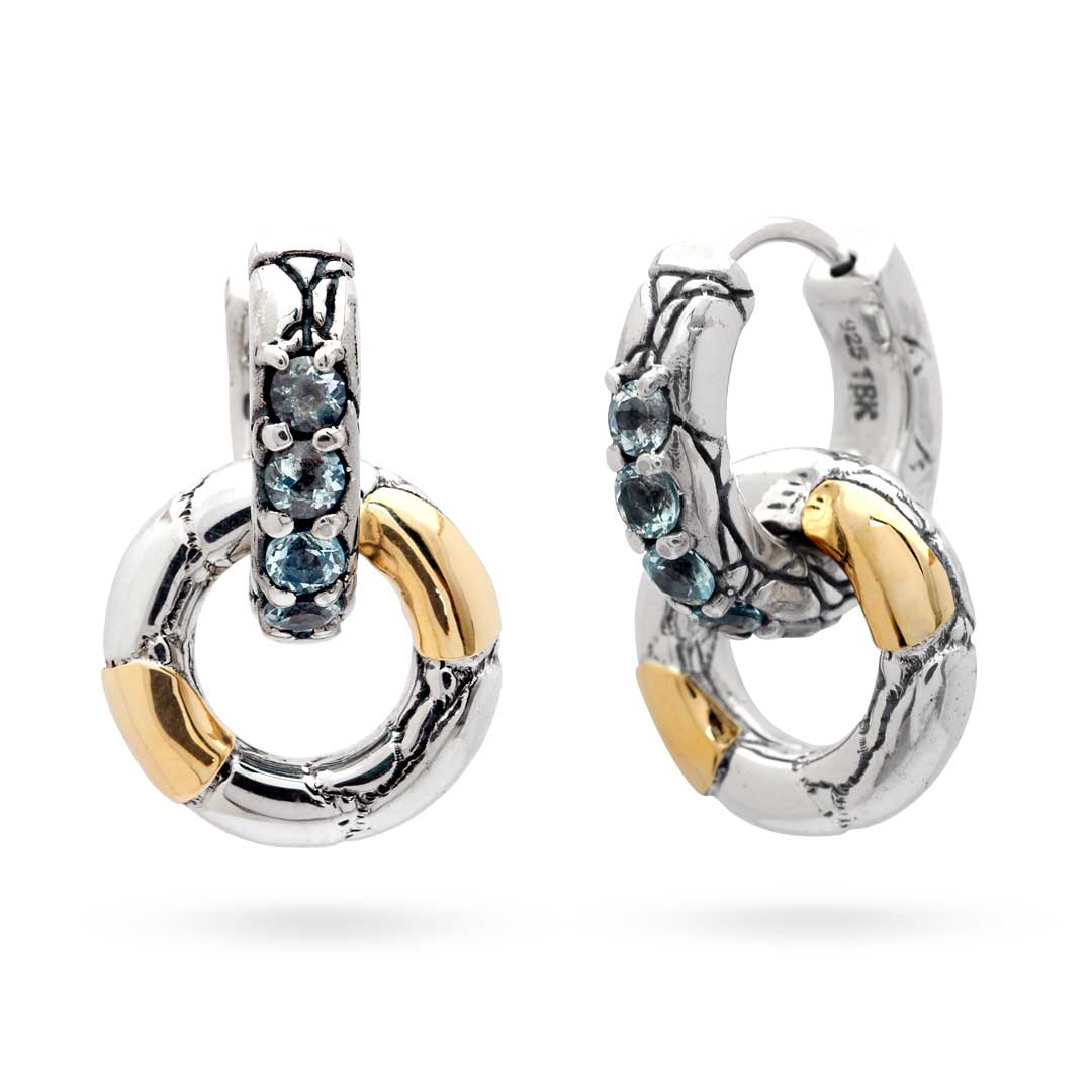 Gold & Silver Earring Double Hoop, Blue Topaz