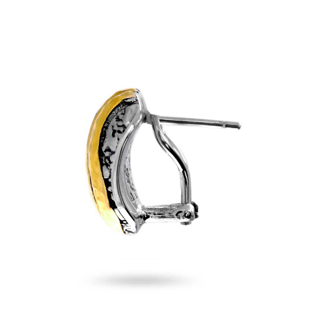 Silver and solid gold 18k earrings with omega back style, Plaster texture collection