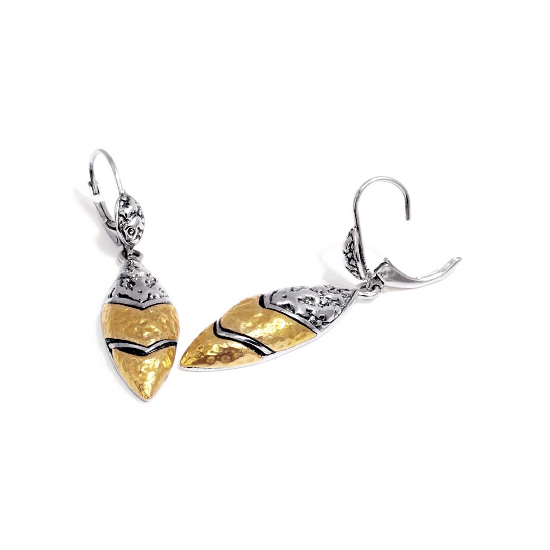 Silver and solid gold accent 18k earrings with Plaster texture motif