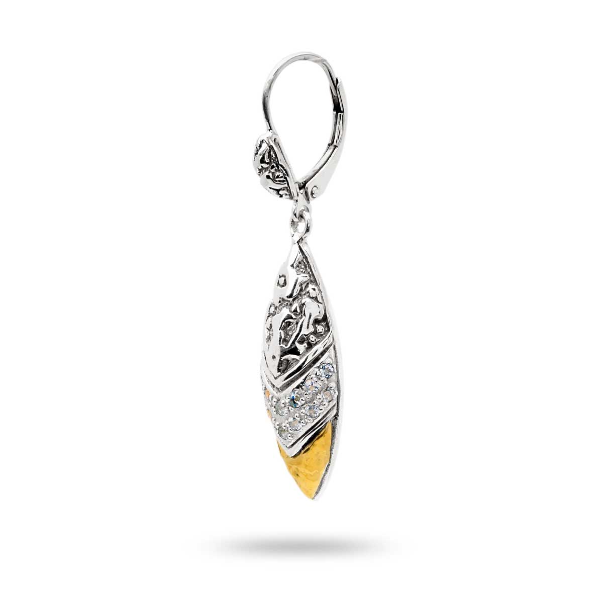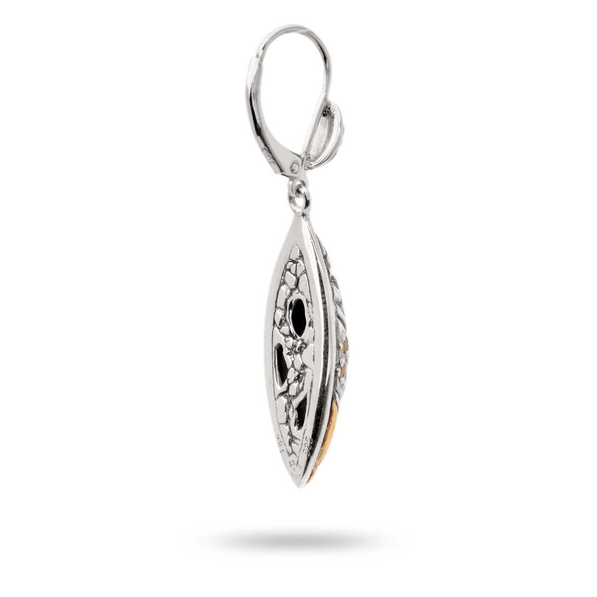 Silver and Gold earring, plaster motif texture, 18K gold accent, white topaz pave