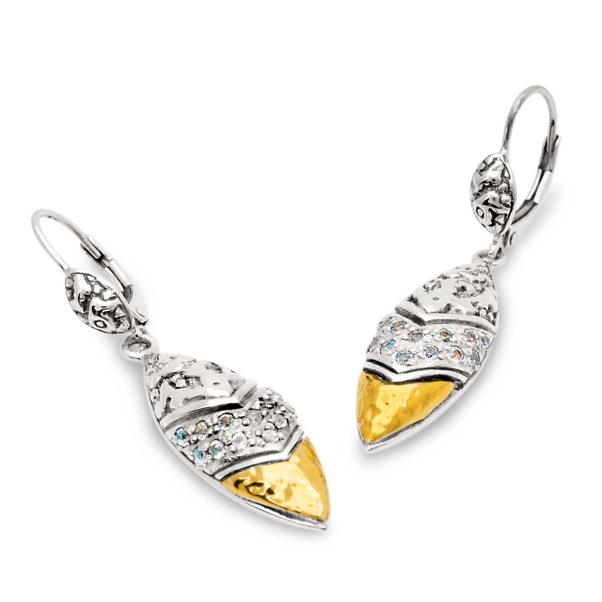 Silver & Gold Earring Plaster Texture, 18K Gold White Topaz