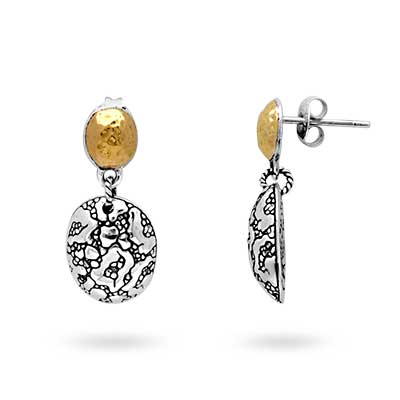 Silver and Gold Earring with semi precious stones, Plaster texture motif