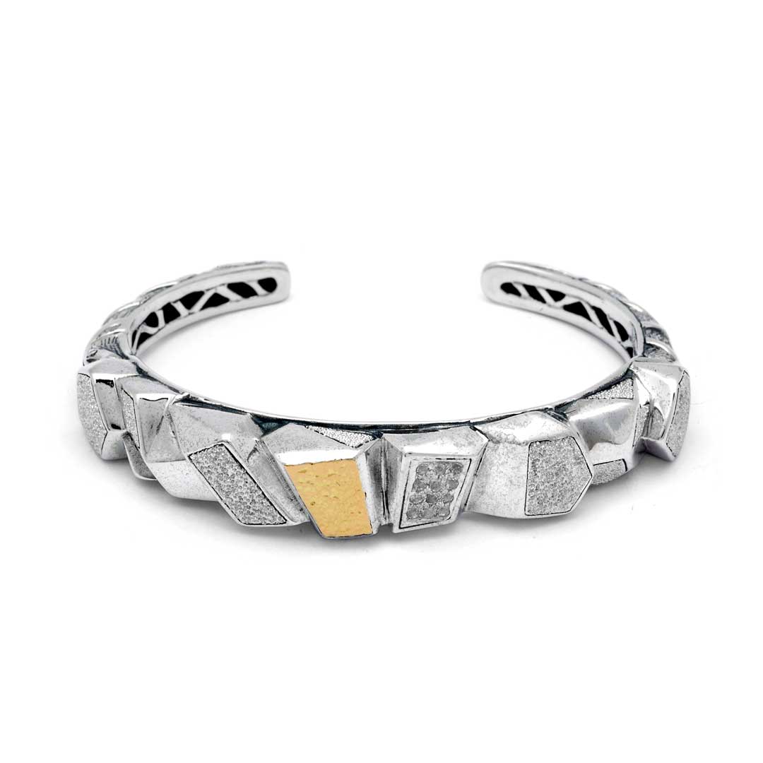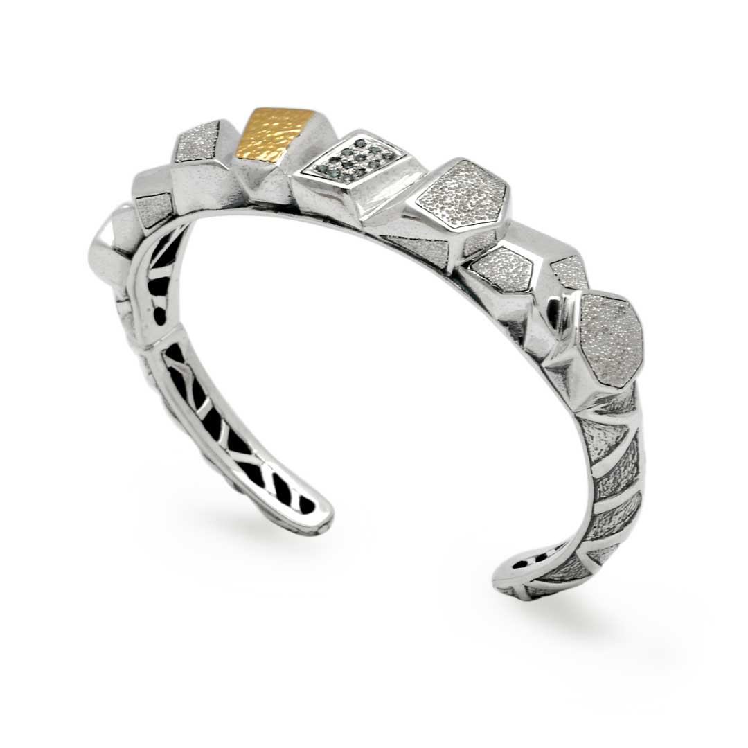 Gold & Silver cuff bracelet, geomatrical shape, White Topaz pave