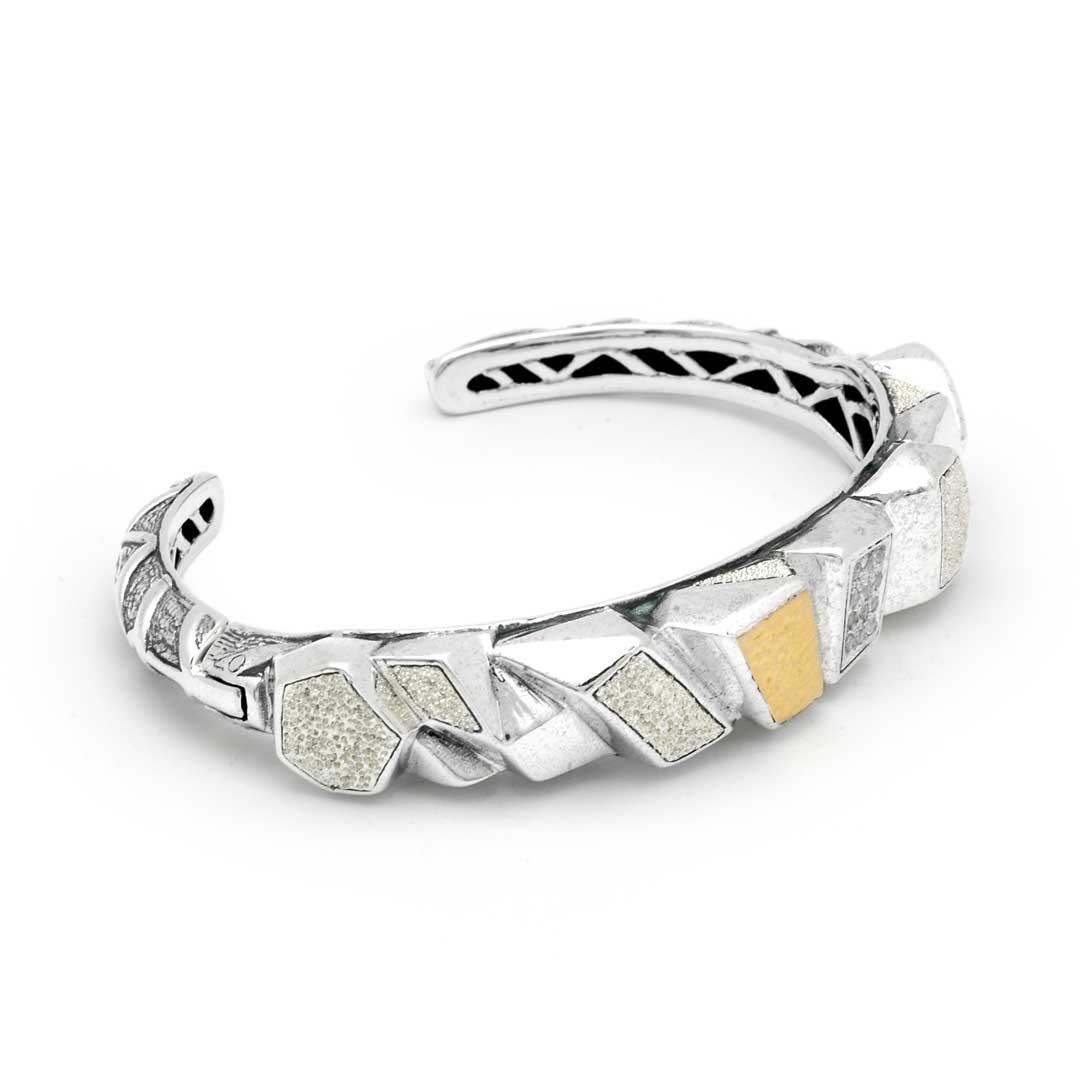Gold & Silver Cuff Bracelet Geometrical, White Topaz Pave