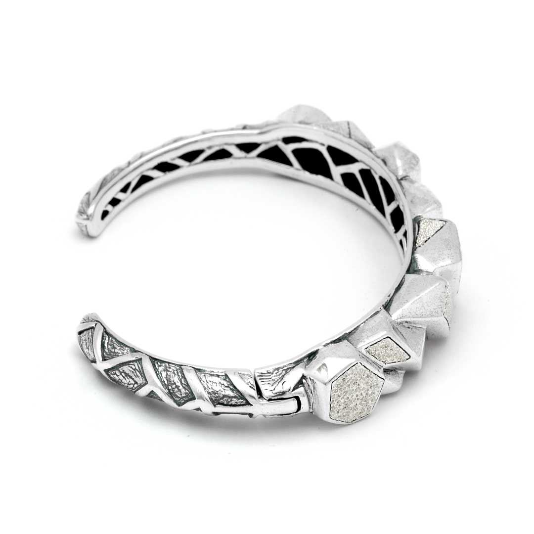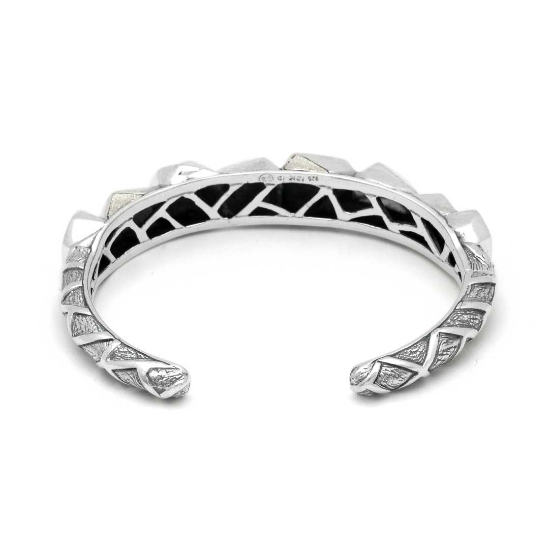 Store in the provided anti-tarnish pouch when not worn. Keep away from moisture and direct sunlight to preserve the silver's luster.