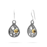 Silver & Gold Earring Circle & Pear Motif, White Topaz Pave
