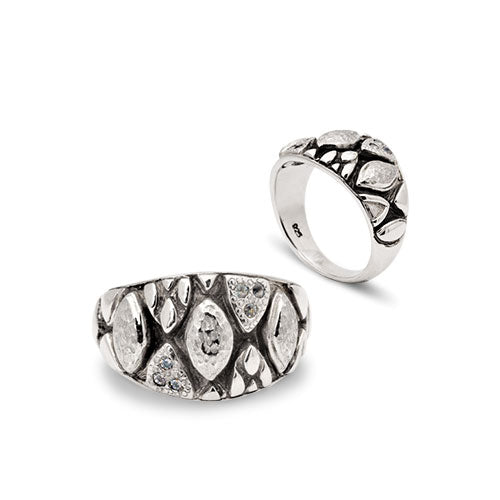 Silver ring, geometrical collection, marquise shape, White Topaz pave setting