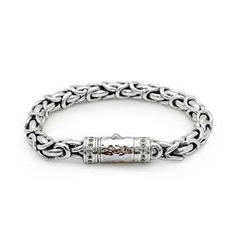 Silver bracelet, scale dragon chain round 6mm, spring lock with hammer motif and white topaz pave stones
