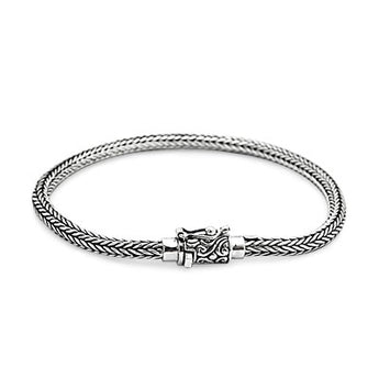 Silver bracelet, tulang naga round 4 mm with box clasp and safety