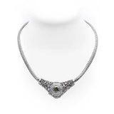 Silver and Gold Necklace, water jasmine motif with Green Amethyst and Zircon pave setting