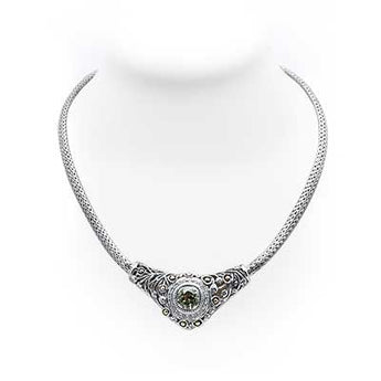 Silver & Gold Necklace Water Jasmine, Green Amethyst & Zircon
