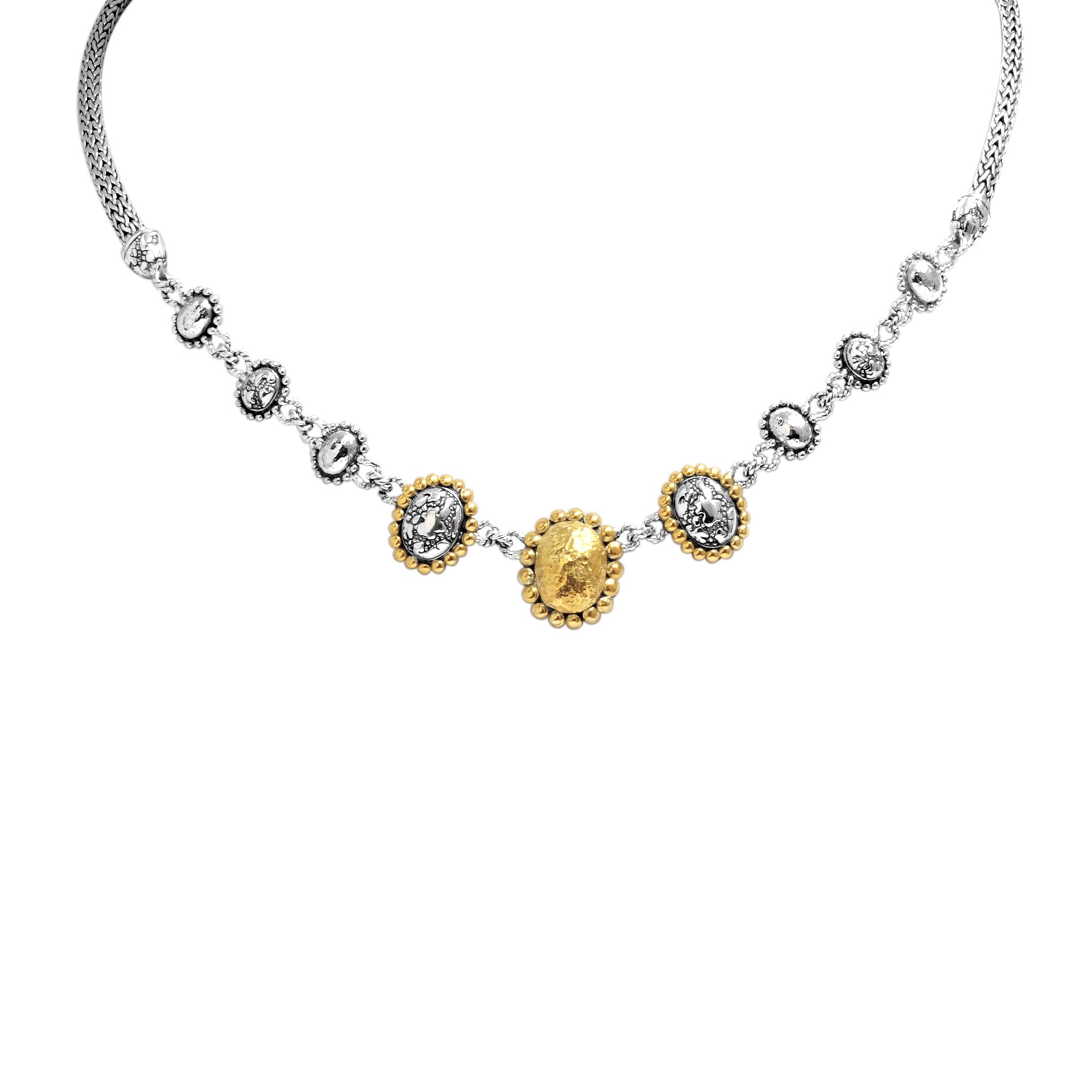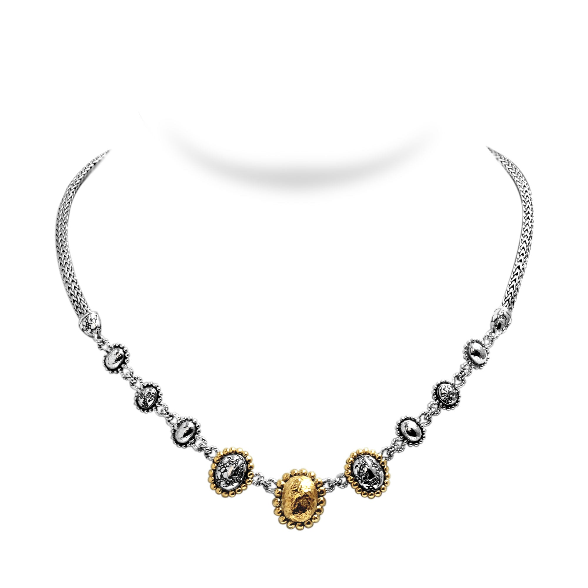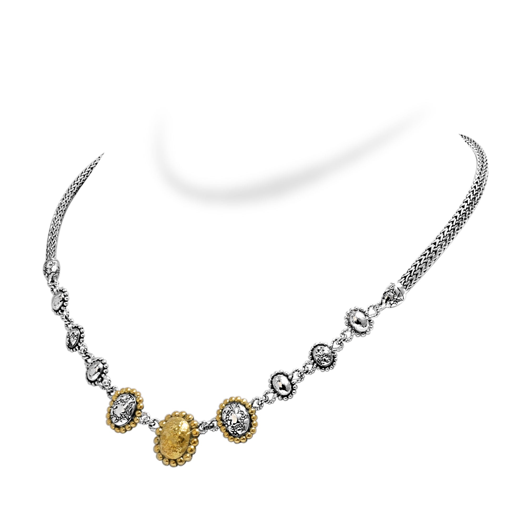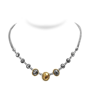 Silver Necklace Plaster Texture, 18K Gold Accent