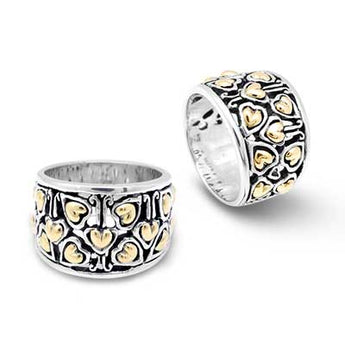 Gold and silver ring, gold heart motif. Gold accents full on the heart motif