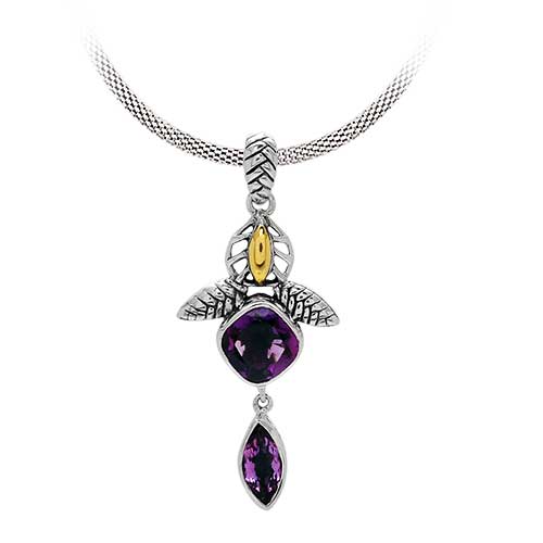 Gold & Silver pendant, Amethyst quartz stones, mega mendung collection