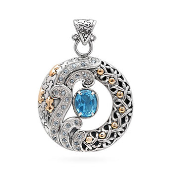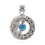 Gold & Silver pendant with Blue Sky Topaz, Puzzle and Balinese variation motif