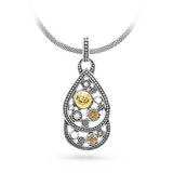 Silver and Gold pendant, circle and pear shape motif, with Citrine pave stones
