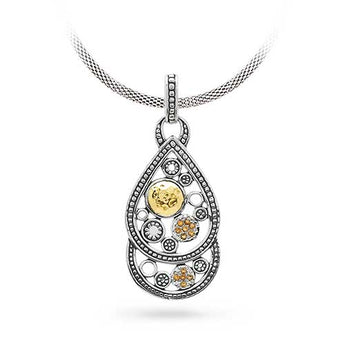 Silver & Gold Pendant Circle & Pear, Citrine Pave