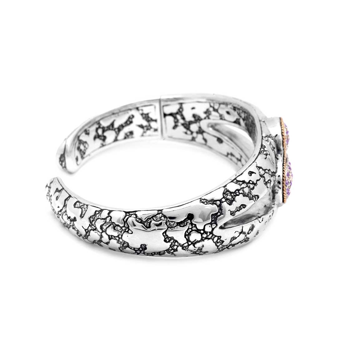 Gold Silver Bangle Amethyst Pave Setting Plaster Motif