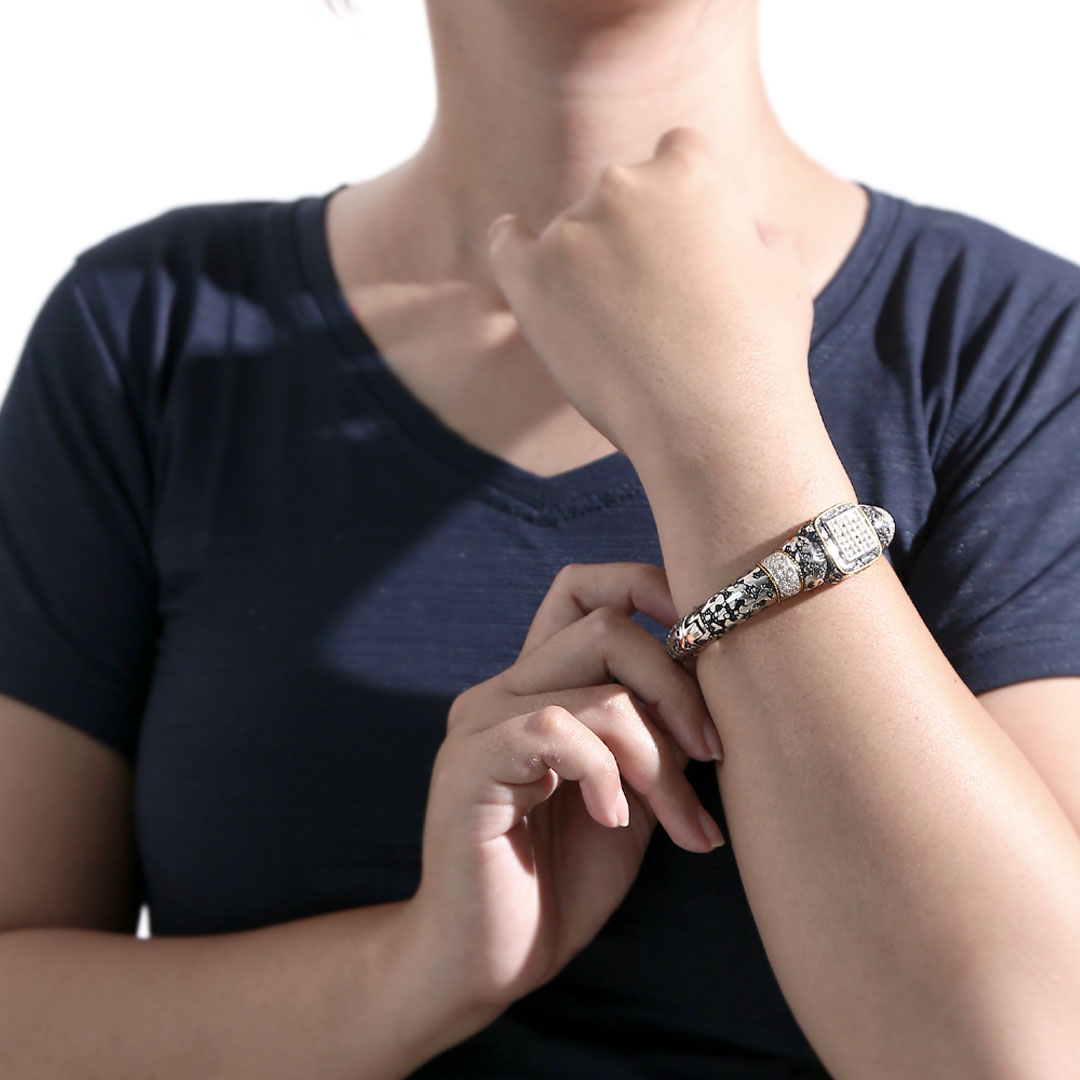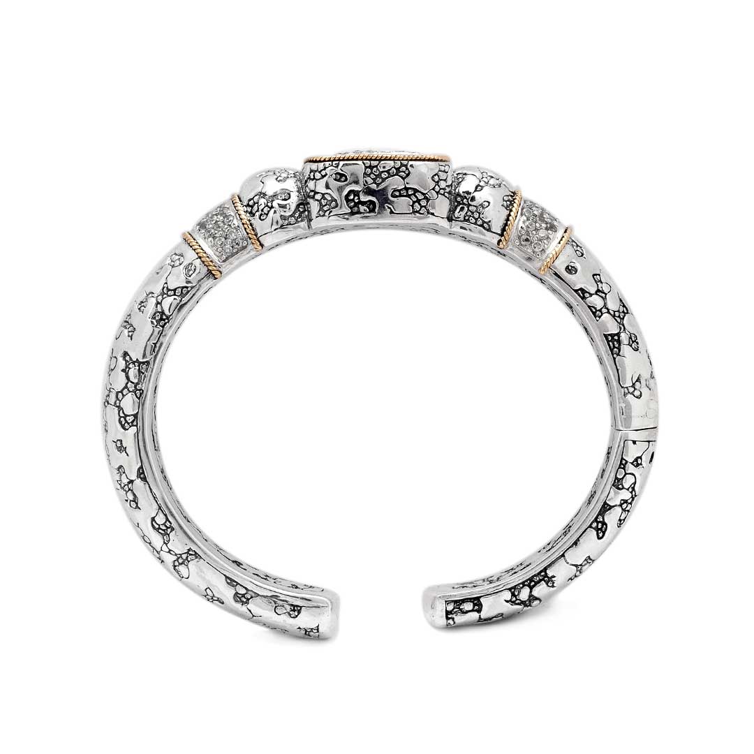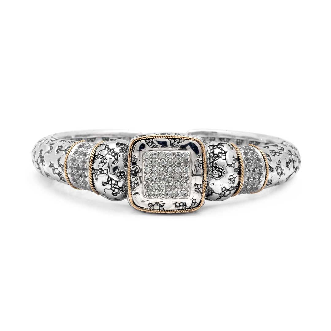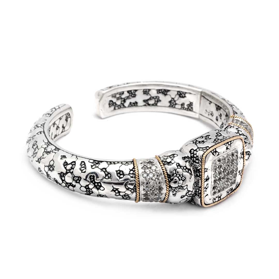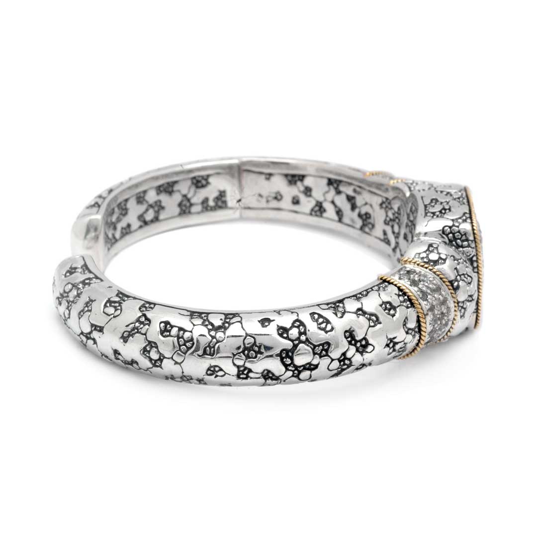 Gold Silver Bangle White Topaz Pave Plaster Texture