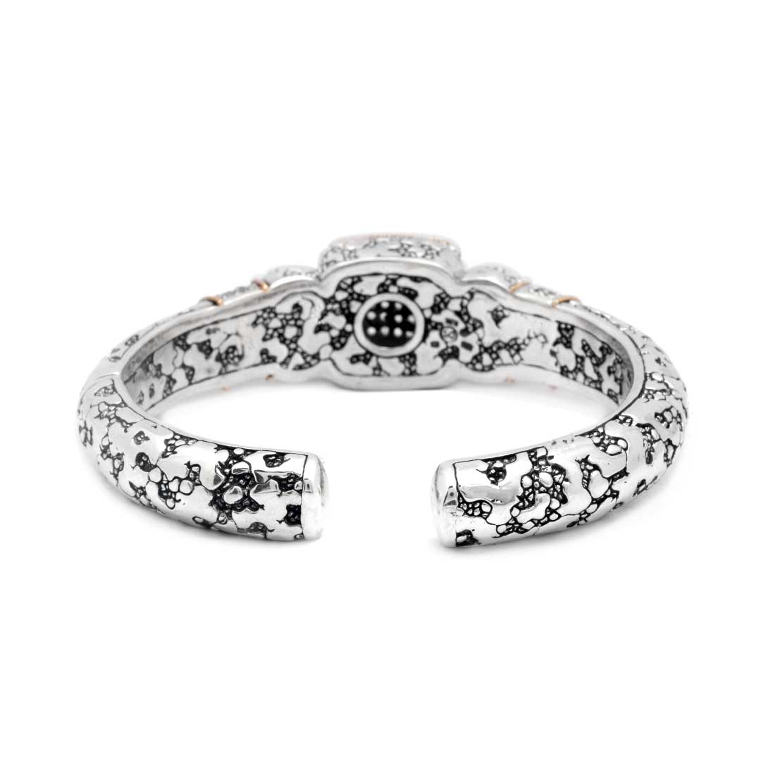 Gold & Silver Bangle with White Topaz Pave setting. Plaster texture motif